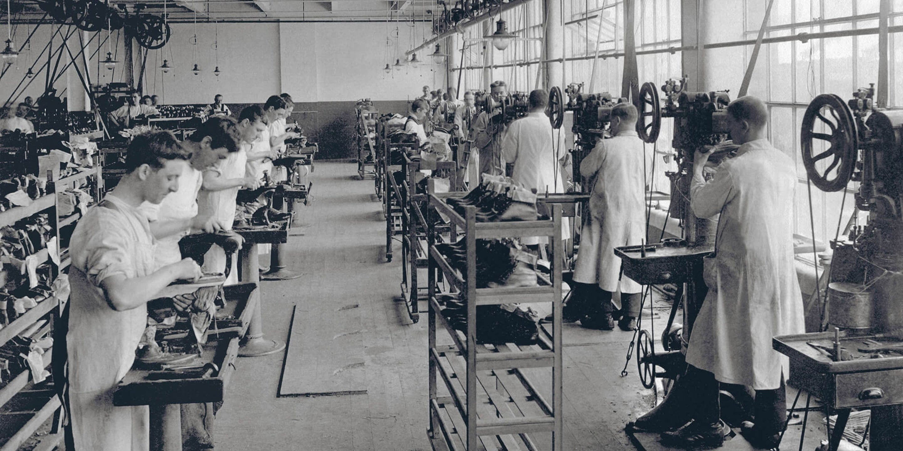 Here they would install the latest machinery invented by Charles Goodyear from the USA for stitching the upper and insole to a welt. This made the process much easier and faster whilst also providing a superior construction. It would be known as Goodyear-welting.