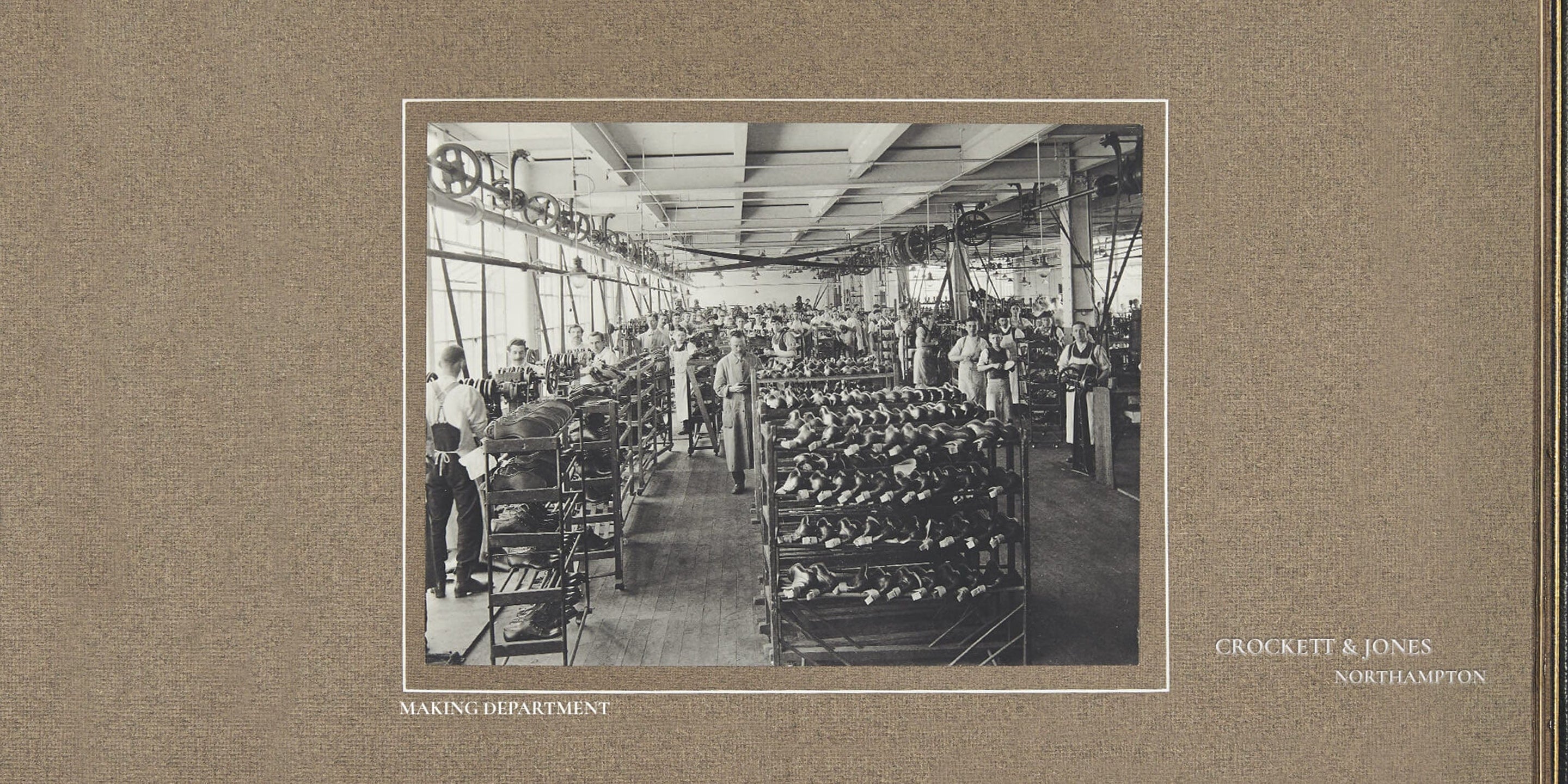 Crockett & Jones was founded by James Crockett & Charles Jones with a workshop on Exeter Road in Northampton. Later moving to a factory on Carey Street, pictured here.
